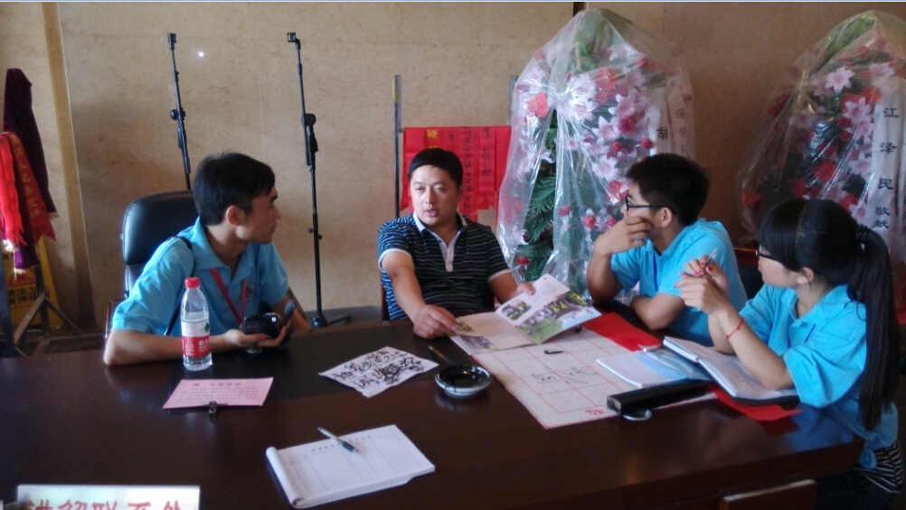 参观结束后,队员们对纪念馆工作人员进行了采访。首先,工作人员对队员们利用暑期实践来学习焦裕禄精神给予了肯定。之后,纪念馆的孔主任给小分队成员详细分析了近几年到纪念馆学习焦裕禄精神的人数变化以及将来的发展趋势,表示了对当代大学生的殷切期望,并为队员们题字“学习焦裕禄精神,勇做时代楷模”,鼓励学生传承焦裕禄精神,传播正能量,勇于担负起传承民族精神的责任。