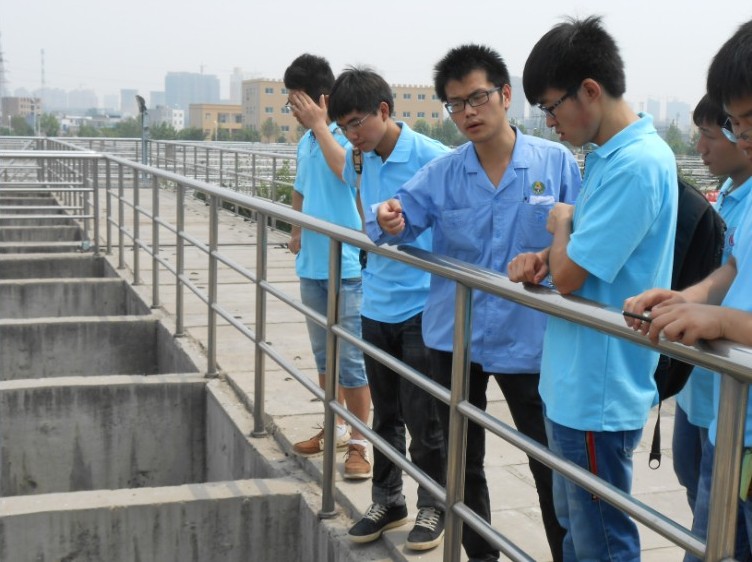队员们对工厂进行初步了解后,在工作人员的带领下,小分队一行前往各污水处理池,实地察看污水处理的整体工艺流程,认识了整个污水净化过程的粗格栅、提升泵、细格栅、旋流沉砂池、二沉池、生物池、沉淀池、滤池。队员们对各个处理池的结构、作用、工作原理及相关数据向工作人员做了详细了解,并进行了分析讨论,大家获益匪浅。在察看与了解的过程中,队员们见证了水体最初的浑黑发臭到最终的清澈澄明的蜕变,既觉得神奇,又深切感受到将来自己作为一名环境保护工作者的光荣使命和责任之重。