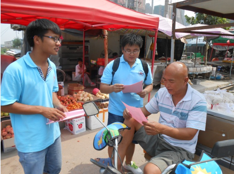 次日9点,小分队乘车前往金水区绿文社区开展以“共建美丽河南,同享美好生活”为主题的环保宣讲。到达社区后,小分队首先与小区居委会进行沟通,征得居委会同意后,队员们首先来到小区幼儿园学前班教室。小朋友们都懂事听话,看到队员们到来,很有礼貌,也很开心。队员们给小朋友讲了一些生活用水常识并号召小朋友要养成节约用水的好习惯。之后,队员们分配好宣传单在社区进行走访。每到一处,队员们都会先递上一张宣传单,上面印有近年来由于水遭受重金属离子污染而引发的重大事故和一些生活用水常识。大家耐心与居民们沟通并讲解节约用水的重要性,就一些污染情况举例说明,特别是重金属离子污染问题。队员们还倡导社区居民要及时向环保局举报非法排污的公司或个人。小分队的活动引起了居民的广泛关注,也得到了他们的大力支持,纷纷表示小分队此次活动很有意义也很有必要,并赞赏队员们是“环保使者”。