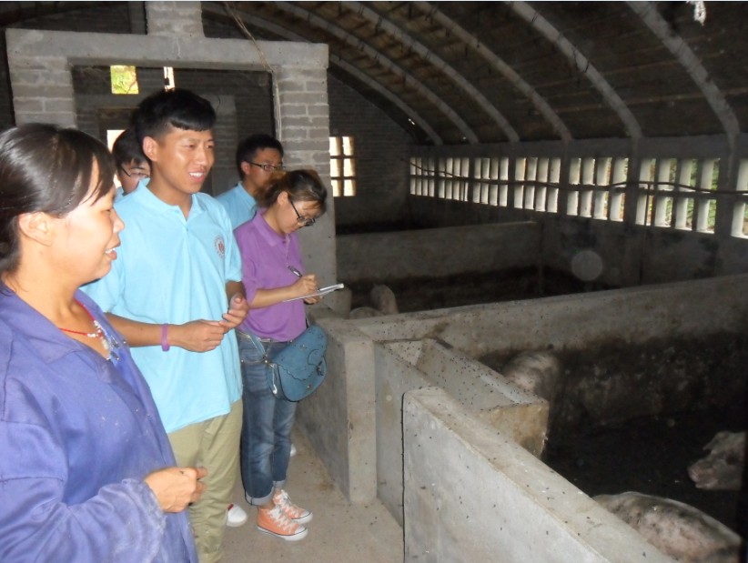 7月11日上午,实践调研小分队一行8人从郑州出发,经过近两小时的车程顺利抵达洛阳偃师。下午,小分队前往调研第一站——虎头山养猪场。队员们了解到,养猪场内无外来技术工作与管理人员,每户以家庭为单位发展中小型养殖业,养殖户不断学习养猪技术,积累经验。通过与养殖户的交流,小分队了解到近几年在政府补助下,农户的养猪事业蒸蒸日上,生活水平明显提高。队员们体会到了农村工作者的艰辛,真切地感受到了虎头山村民的热情好客与踏实肯干。