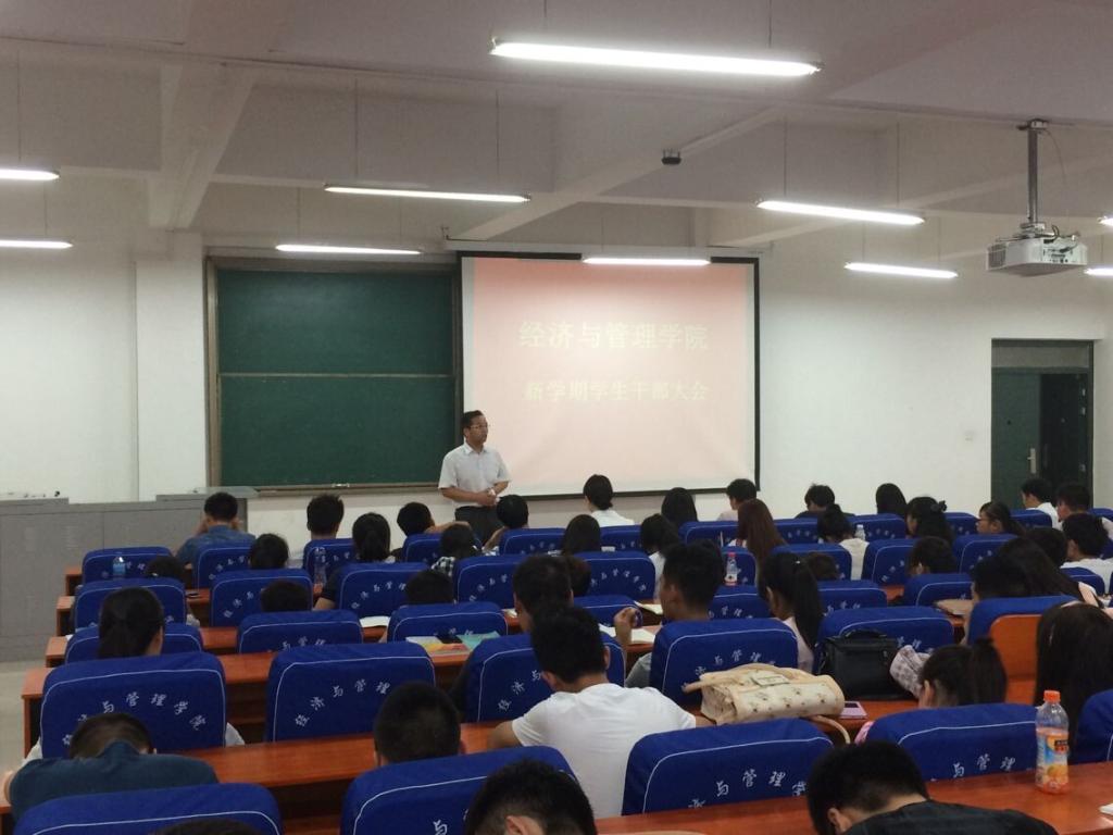 为保证我院新学期学生工作顺利开展,更好地促进学生工作全面、协调、可持续开展,9月1日中午,经济与管理学院在经管楼211召开了新学期学生干部大会。党总支副书记刘洪民、分团委书记陈章美、学生会、年级团总支全体成员参加了本次大会。