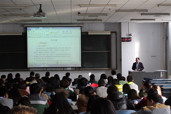 11月13日,外国语学院在教三楼205教室开展“道德大讲堂”活动。陆相欣老师受邀为外国语学院师生做了“君子之道”的专题辅导讲座。学院党政领导、教工党员、学生党员及全体学生干部200多人参加了报告会。