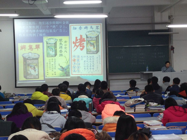 会上,丁恒杰主任先从烟草和卷烟的历史讲起,由世界引向中国,进而讲述了我国烟草行业的发展史,并以毛主席、周恩来等伟人举例,以生动形象的描述帮助同学们理解了烟草的独特作用,一幅幅真实的图片引起了同学们的浓厚兴趣。接着,他从国家和个人两方面讲解了烟草的独特作用,与大家交流了对待烟草的态度——既不能以偏概全,也不能全盘否定。最后,丁主任着重介绍了黄金叶品牌的近代发展状况,重点分析了中国烟草行业未来的发展趋势,鼓励在校学生努力学好烟草专业知识,为以后烟草行业的发展做出自己的贡献。丁主任热情洋溢的讲解时不时赢来现场观众的热烈掌声。