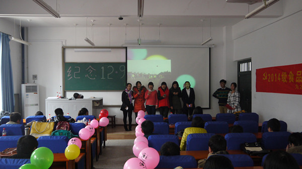 为纪念“一二•九”运动79周年,铭记历史,展望未来,食品与生物工程学院(烟草科学与工程学院)于2014年11月29日举行了以纪念“一二·九”爱国主义运动”为主题的团日活动,学院辅导员老师和2014级学生参与了本次活动。