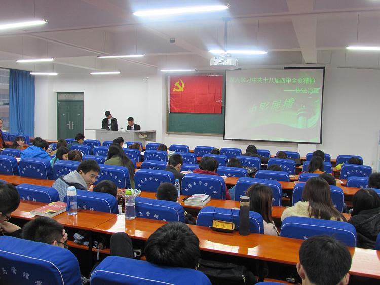 为鼓励入党积极分子贯彻落实十八届四中全会精神,坚持依法治国,12月4日,经济与管理学院在经管楼211举办入党积极分子培养教育活动。