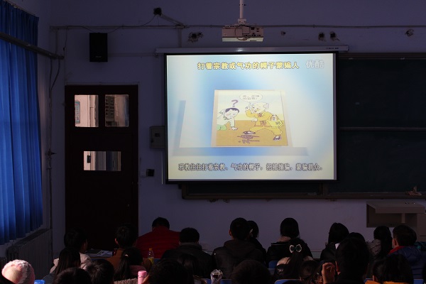 为进一步加强反邪教警示与法制宣传教育工作,切实增强学生防范邪教、识别邪教、抵制邪教、远离邪教的意识和能力,12月9日,外国语学院在东二楼100教室开展反邪教法制宣传教育活动。