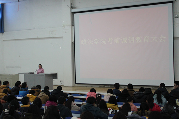 政法学院于1月9日中午12:30在科学校区电教楼408召开了诚信考试动员大会,政法学院全体辅导员和学生参加此次大会。