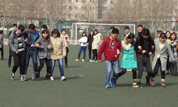 3月7日,外国语学院在运动场举行了快乐女生节趣味运动会。项目有三人四足,男女生篮球接力,背靠背运气球,拔河比赛等。活动娱乐性强,趣味十足。比赛中,女生们精彩的表现更是赢得了同学们热烈的掌声和欢呼声。激烈的对抗和同学们团结拼搏的精神,使现场气氛热烈,高潮迭起。“两人三足”、“背对背”等趣味活动也给广大女生带去无尽的欢乐。