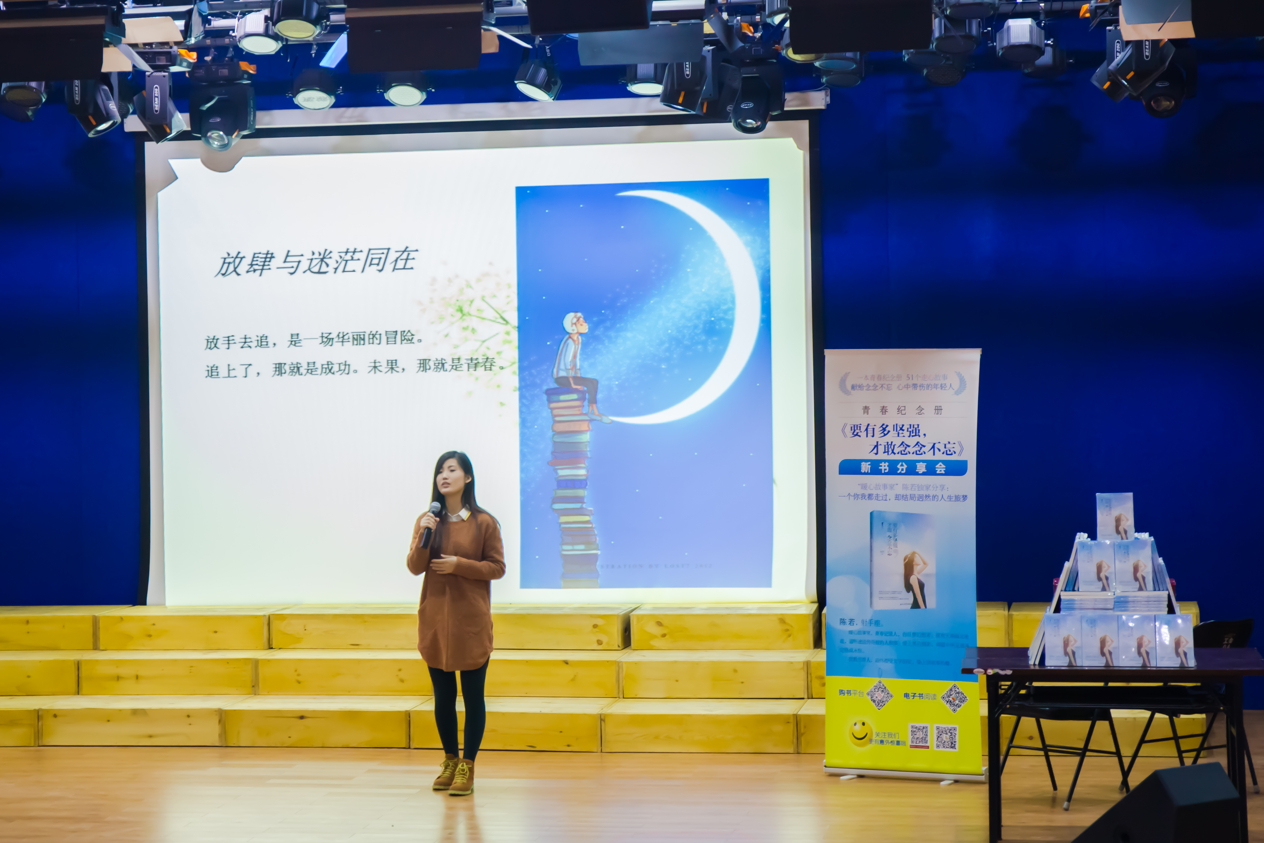 分享会中,陈若与同学们分享了她多年来从事青春文学创作的心得,强调了阅读对于一个人成长成才的重要意义,希望同学们不仅仅满足于网络阅读,要重视传统的文本阅读。她说,阅读可以帮助我们成长,阅读可以让我们丰富,要多走进图书馆去阅读,多走进书店去选择适合自己的读物。同时,她结合自身的成长经历,阐述了自己在青春岁月中遇到问题和困难时如何去面对、如何去抉择、如何去解决。