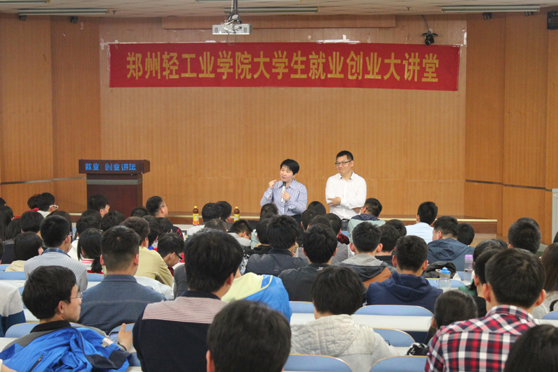 3月30日晚7时,郑州轻工业学院大学生就业创业大讲堂在我校东风校区教三楼103举行。本次讲座由校团委、毕业生就业指导中心主办,大学生就业与职业发展协会承办。比亚迪原始股东之一、著名投资人王海全先生,世界500强企业大中华区高级总监李亚平女士,GE集团河南总经理许井春先生担任主讲人,校团委副书记张超钦、赵灿鑫及近400名同学参加了讲座。