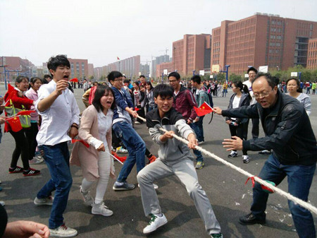 3月29日,我院组织学生开展了素质拓展活动。参赛规则为将相邻队员的脚绑在一起,一起跑过长50米的赛道。参赛班级每班派出10人参赛。赛场同学们一个个胳膊互挽着,随着哨声,相互扶着喊着响亮的口号,冲向终点。赛场上欢呼声、呐喊声此起彼伏,处处洋溢着青春的滋味。食品科学与工程2014-1班获得本次趣味赛的冠军。