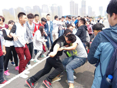 3月30日,我院组织2014级学生参加拔河比赛。队友们紧握绳子,力往一处使,心往一处聚。啦啦队在旁边为自己的班级加油助威。整个场面既激烈又激情四溢。本次比赛,烟草工程2014-1班获得冠军。