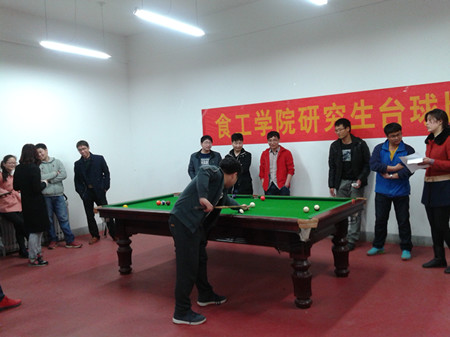4月1日,我院研究生会于食工楼252室,举办了研究生台球比赛。研究生们积极报名,踊跃参与,活动分成预选赛和决赛两个部分进行。男女生比赛分开进行。短短的比赛使研究生们缓解了科研和学习的压力,增进了同学间相互交流的深厚友谊。
