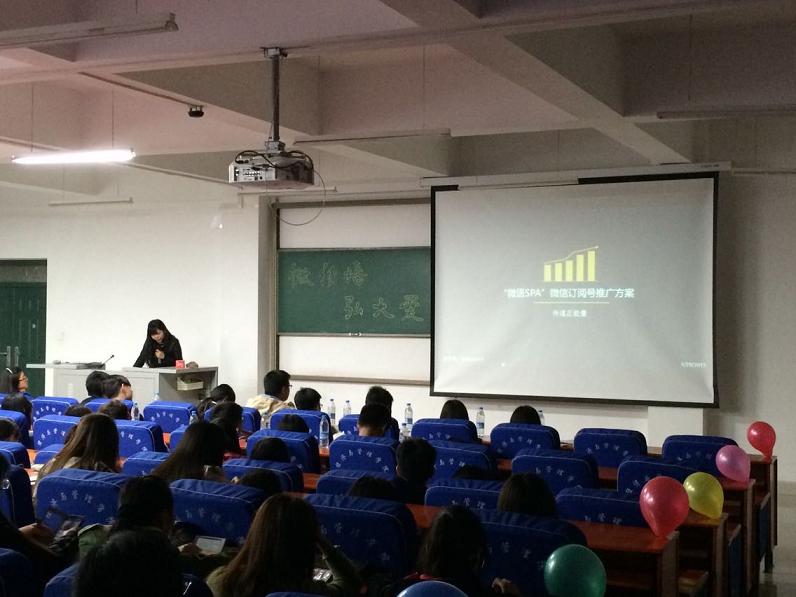 为迎接学校心理健康教育宣传月,进一步推进我院心理健康教育工作。在经济与管理学院在心理健康专职辅导时军鸽、姚少华老师的指导下,经过长期的准备、策划、编辑,创立了经济与管理学院“微语SPA”微信公众平台,并在3月29号召开了订阅号推荐会。