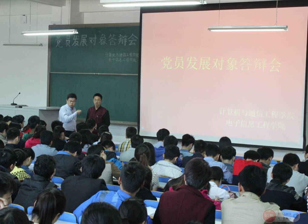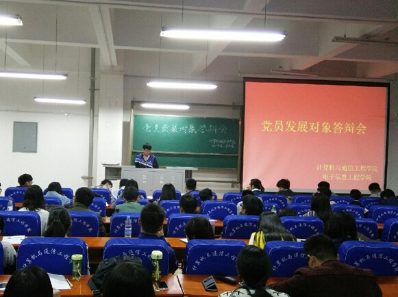 4月15日、16日,计算机与通信工程学院(电子信息工程学院)学生党支部在分别在科学校区和东风校区召开2015年上半年党员发展对象演讲答辩会,学生党支部老师、全体辅导员参加会议,老师们和随机抽调的党员和学生代表担任评委,600余名学生党员、入党积极分子和学生代表参与活动。会议分别由学生两个支部书记葛勋、司丽娜主持。