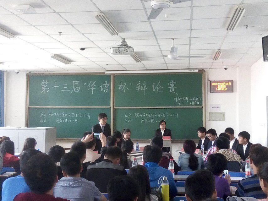 下午,计算机与通信工程学院(电子信息工程学院)于二教楼802室成功举办“正学风 聚能量”学风建设活动之第十三届“华语杯”辩论赛总决赛。