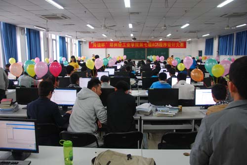本次大赛有来自解放军信息工程大学、郑州大学、河南理工大学、河南工业大学、河南水利水电大学、河南财经政法大学、中原工学院、郑州师范学院、安阳师范学院、升达经贸管理学院、郑州信商学院和省实验中学信息学竞赛班的56支队伍和我校6个院系的80支队伍共计136支队伍,四百余人参赛。大赛得到了郑州珑凌科技公司的冠名赞助,邀请了10名从ACM走出的11届毕业生返校交流助阵,组织了来自计算机与通信工程学院学生和实验中学的高一同学60余人作为大赛的志愿者为比赛服务。