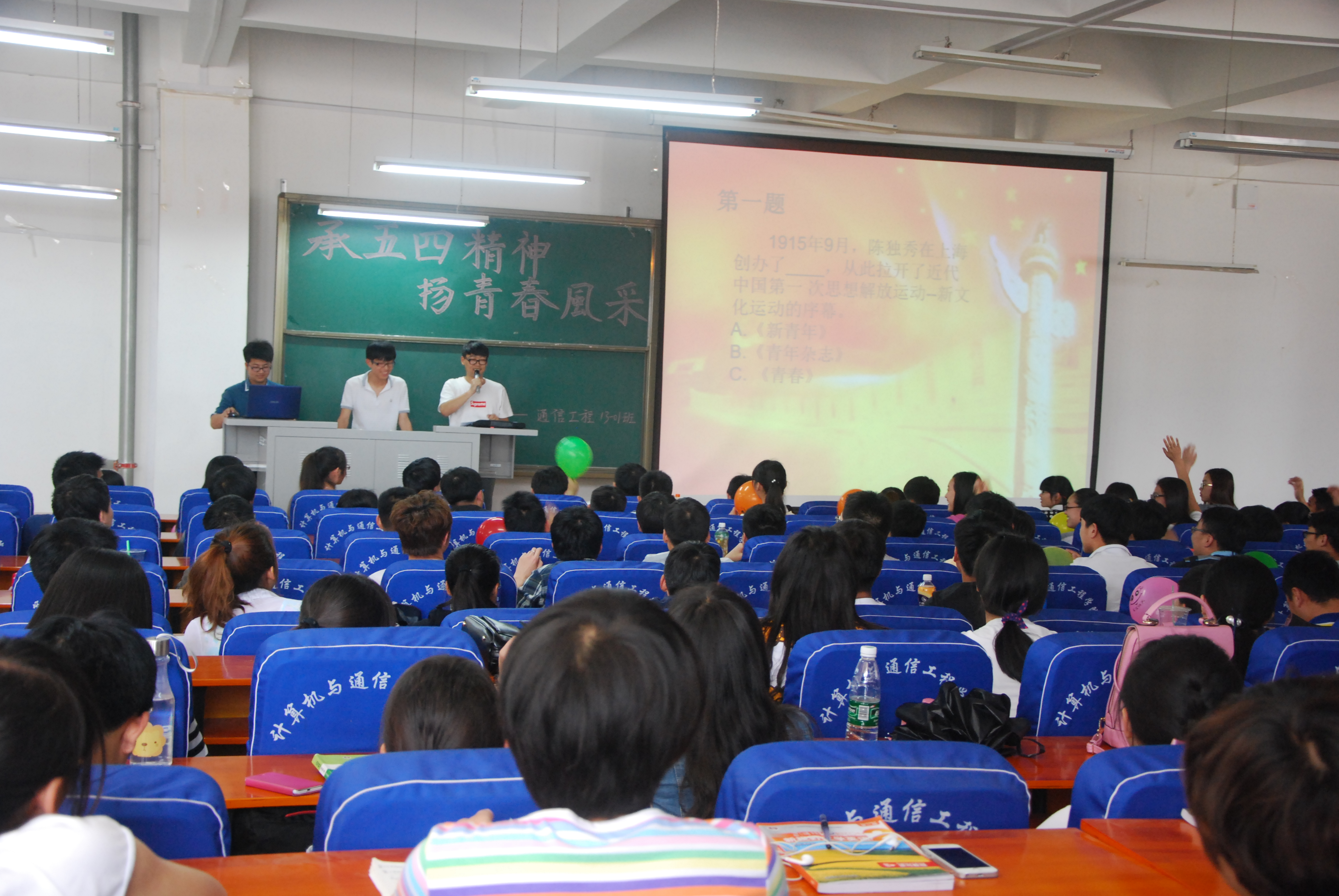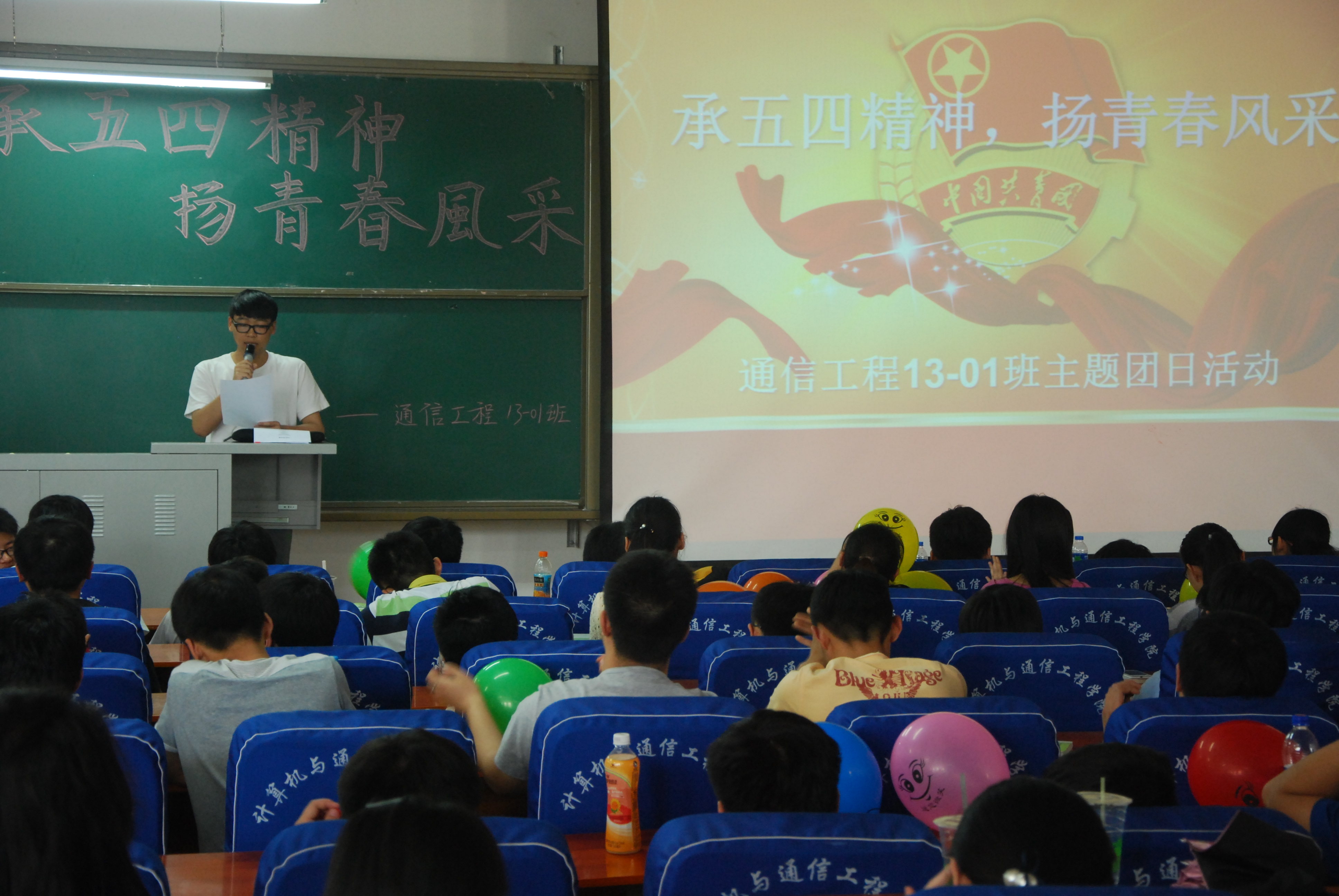为纪念“五四”运动96周年,在“五四”青年节到来之际,按照上级团组织要求,计算机与通信工程学院(电子信息工程学院)分团委于4月28日中午在计算机楼217教室举办了以“承五四精神,扬青春风采”为主题的示范团日活动。