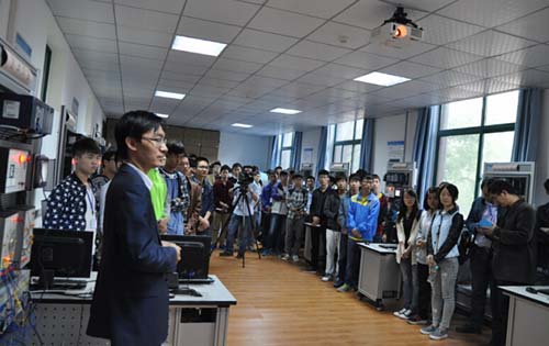 ,主题为“交流源于你我之间”的GE自动化系统集成实验室开放日活动启动仪式在电气信息工程学院西二楼举行。教务处张东初处长、电气信息工程学院曹玲芝书记、宋文军副书记、郑安平副院长等100多位师生参加了启动仪式。启动仪式由曹玲芝书记主持。开放活动期间,设备处许培援处长到现场指导工作。