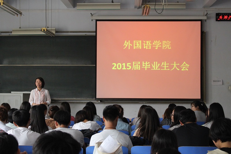 本次大会针对毕业生就业协议书签订、档案转递、组织关系转移等问题进行了详细讲解,解决了同学们的困惑,明确了任务,为外国语学院2015届毕业生顺利毕业、文明离校奠定了良好基础。