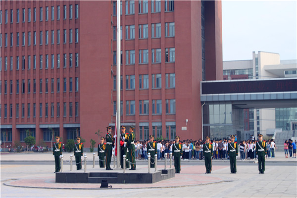 2015518日上午7点,政法学院在科学校区东西塔之间举行升旗仪式,各班同学准时到达。