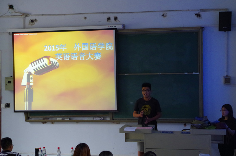 5月21日下午3点整,外国语学院“英语语音大赛”在东二楼100拉开帷幕。英语专业教师吴迪、聂韶峰、胡敏、周晓红老师担任评委,来自英语专业的15组选手各展才能,为观众们献上了一场激情饱满的英语演讲、配音盛宴。