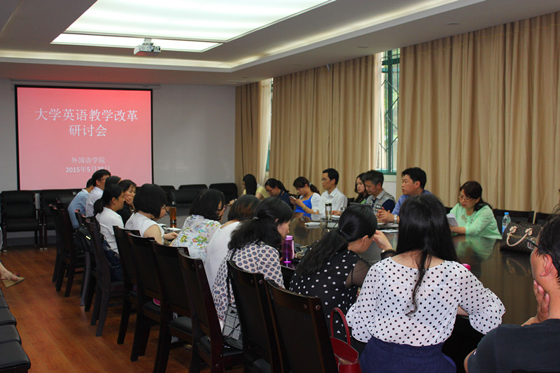 5月28日下午,外国语学院在东二楼109室举行“大学英语教学改革研讨会”,会议由周麦成副院长主持,全体大学英语教师参加了本次会议。