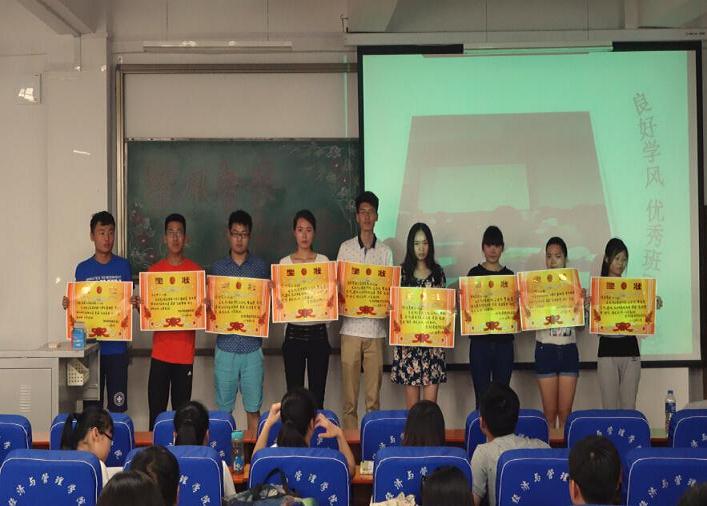 本次学风督查月表彰大会旨在加强学风建设,提高学生学习的积极性。活动初始,由我院学生会纪检部就学风督察的过程意义和日常工作中发现的问题、总结的经验进行了发言。来自市场营销14-02班的班长李慧星作为班级代表对班级优秀学风进行汇报,并总结经验。通过纪检部日常考勤及到课率统计,大会评选出会计学12-02班、财务管理13-01班和市场营销14-02班等7个先进集体并颁奖。最后,陈章美老师对同学们积极参加本学期我院举办的“正学风聚能量”学风建设系列活动给予了充分肯定,并对今后我院学风建设提出了一些意见和建议。