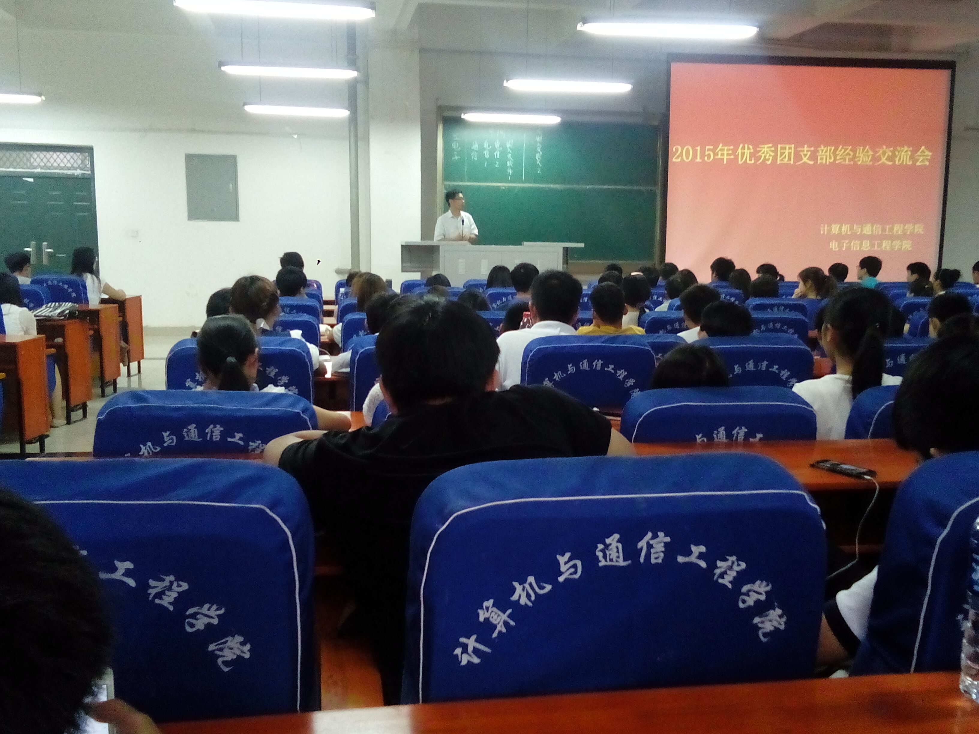 为进一步提升先进团支部班级的榜样示范作用,共同促进学生班级建设,计算机与通信工程学院(电子信息工程学院)2015年5月31日下午4:30在计算机楼217举办了部分专业的“2014级先进团支部经验分享大会”.