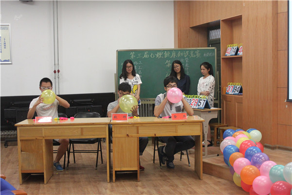 为了进一步加强我校大学生心理健康教育工作,提高在校大学生心理健康素质,同时响应中央和河南省加强和改进大学生心理健康教育的要求,加强各院系学生之间的交流,我校于6月11日下午2点半在科学校区学生活动中心楼113开展了心理健康知识竞赛。