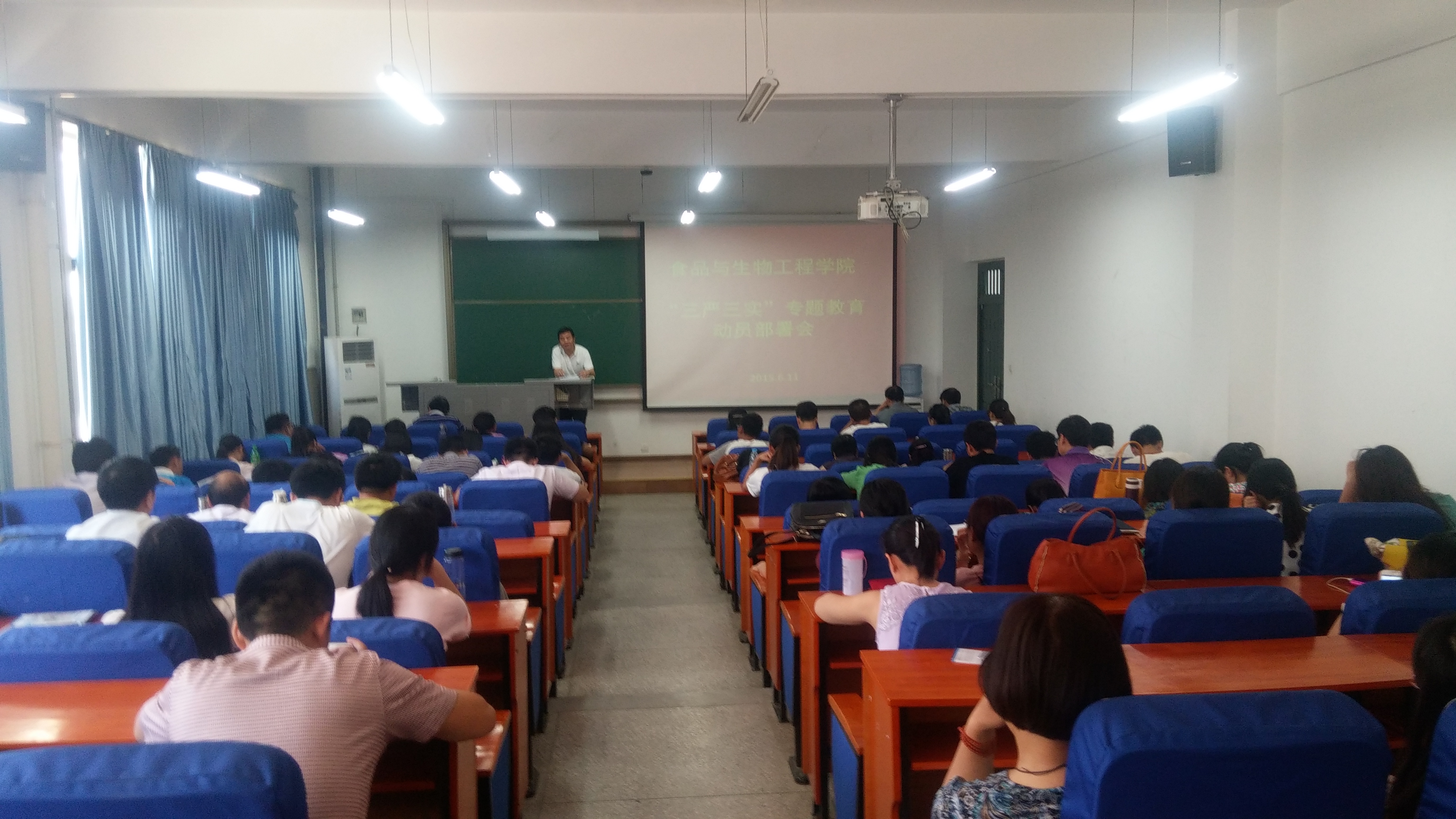 按照校党委“三严三实”专题教育活动的统一部署和我院“三严三实”专题教育工作计划,6月11日下午,食品与生物工程学院在食工楼209召开学院“三严三实”专题教育动员大会暨总支书记为党员上专题党课活动。学院全体中层领导成员、教工党员和学生党员参加了本次动员大会并听取了党总支闫铨钊书记的专题党课。