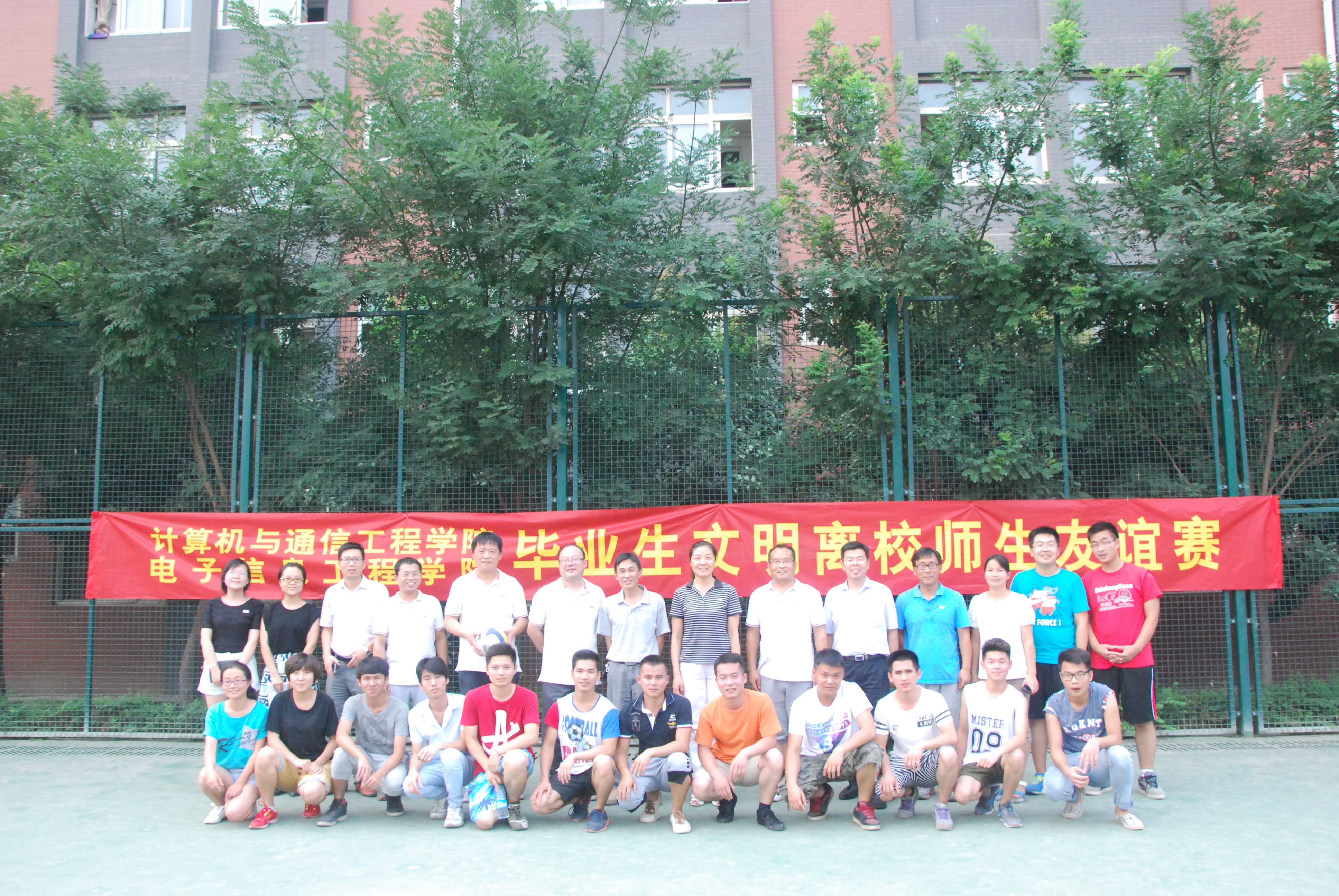 按照计算机与通信工程学院(电子信息工程学院)2015届毕业生文明离校方案安排,6月16日-18日期间,学院组织开展“毕业季”师生体育运动友谊赛。学院教师、2015届研究生和本科毕业生代表参加了活动,同时也吸引了低年级学生到场加油助威。