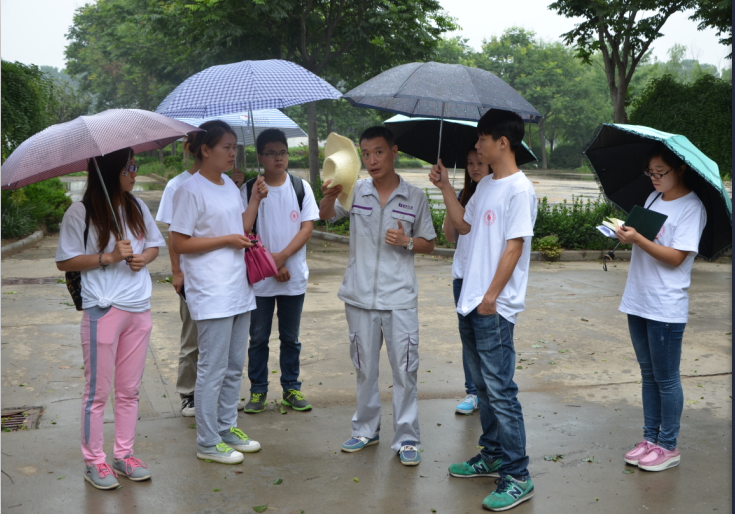 7月18日,在河南省晋开化工投资控股责任有限公司,工作人员向队员们讲解了晋开集团成为河南最大的煤炭合成氨化肥厂的发展历史。并带领队员们参观了制备合成氨、含氮物质、水煤气、硝酸等物质以及气体的去硫除杂等所用到的大型仪器,污水处理装置及其流程,了解它们的工艺流程和实际意义。参观过程中,队员们对各个污水处理池的结构、作用、工作原理及相关数据同工作人员做了详细询问和分析讨论,并向工厂提出了一些合理的建议。