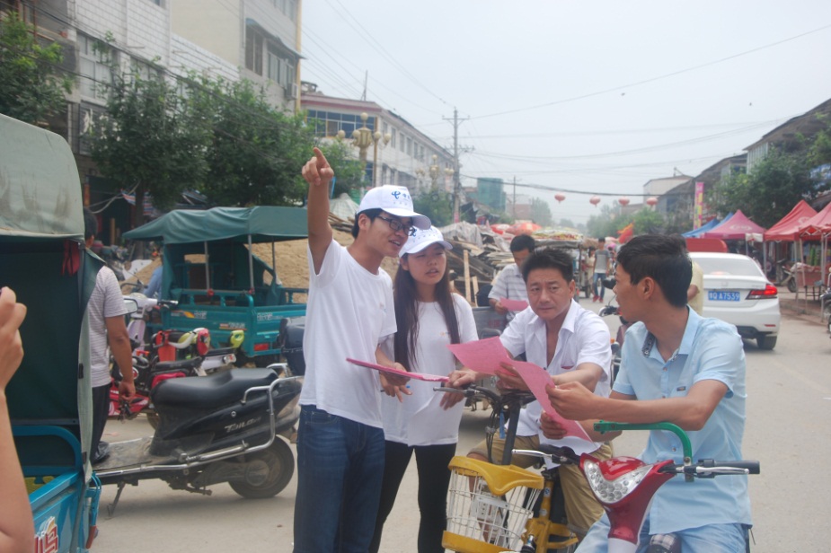 7月19日,队员们前往汝南县老君庙镇,按照前期工作部署,在工作人员的帮助下,在人口流动较大的聚集点进行搭建工作,之后播放乡镇信息化和“互联网+”视频,发放宣传资料,为村民们讲述信息时代农业机械化、信息化的管理方式及“互联网+”为乡镇农村带来的农产品销售信息化等增收致富的方式,同时,实践队员先后发放大量问卷调查,积极了解当前乡镇的信息化程度,“互联网+”的普及程度及农民们的真正需求。之后,队员们赶赴君思缘种猪场和老君庙种植场,在了解到两场地各自的情况后,为村民详细介绍了网络信息化在种猪场内的应用方向、增收致富的“互联网+”模式和“祥云航空植保无人机”。