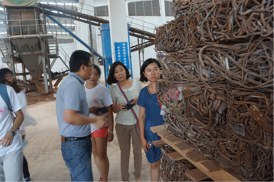 在旭龙再生资源有限公司工作人员的带领下,队员们参观了原料筛选、分类车间和砖块制造车间,了解到随着城镇化的不断发展,建筑垃圾的处理以及天然资源的不可再生成为平顶山市城市化发展的难题,给地方经济发展提出挑战。与此同时,队员们也看到城市垃圾的再加工带来良好的社会效益和环保效益,以及建筑垃圾的重复利用对城市环境和社会压力的缓解。