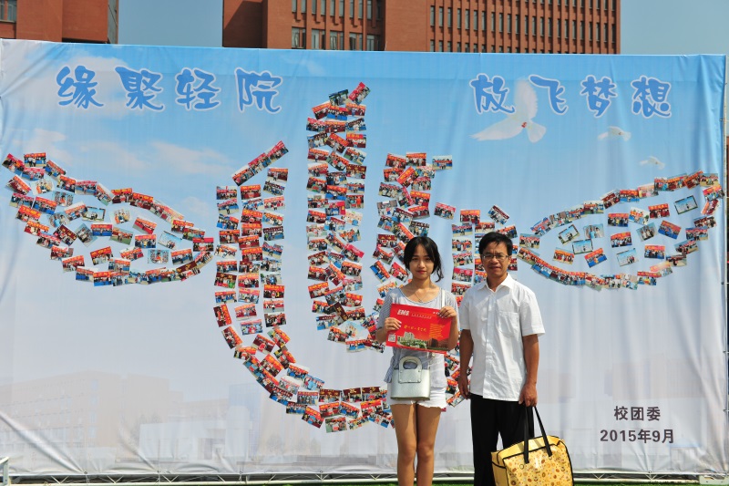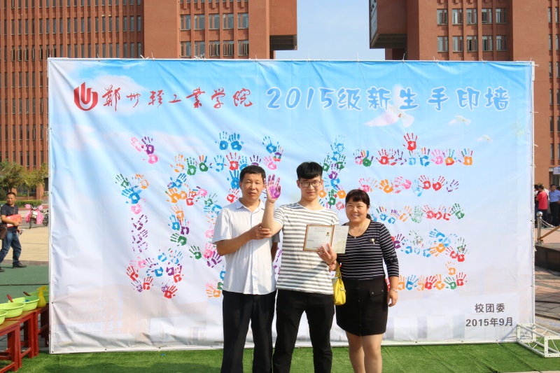 (二)两校区迎新大本营设立了新生笑脸墙与手印墙。 “缘聚轻院,放飞梦想”,志愿者组织“笑脸”摄影组,抓拍近千余张新生入学第一张珍贵纯真的笑脸,组成别具一格的笑脸墙。十年寒窗梦,今日终成真,带着对大学的种种期盼,郑重地在“手印墙”上按下自己的手印,众多的手印一起组成“诚信”二字,表达了2015级新生将以“诚信”为起点,在入学第一天,郑重宣誓,在父母的见证下开启自己珍贵的大学生活,并分享和展示了新生在初入大学时的愉悦与憧憬,深受学生及家长欢迎。