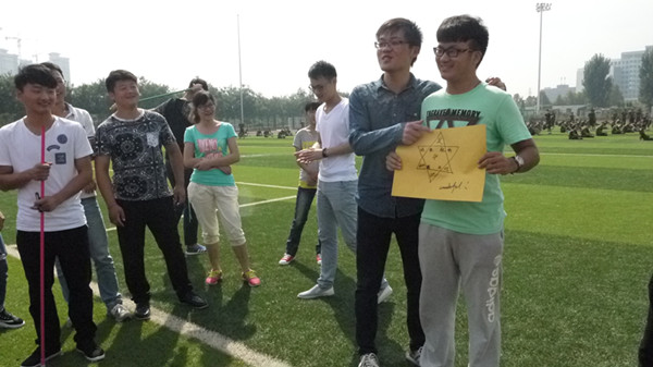 和风习习,阳光明媚,绿草如茵的体育场,一张张神采奕奕的面庞散发出蓬勃的朝气。素质拓展训练在团队建设的哨声中拉开了帷幕,从确立队长、队名、队歌、团队口号等开始,各队群策群力,充分发挥集体的智慧。本次素质拓展共设置了“平地而起”、“疯狂的设计”、“齐眉棍”三个拓展项目。团学干部们在“体验式学习”中,增进了彼此间信任感、责任感,增强了其自信心、沟通能力、领导能力和团队合作能力。每项训练项目完成后,各队队长都会带领队员交流感悟、畅谈心得,形成了良好的协作进取氛围拓展训练给队员们带来了全新的感受,达到了磨练意志、陶冶情操、完善自我、熔炼团队的目的。