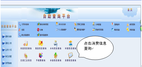 3、成功登陆自助查询系统后,点击“消费信息查询”如下图: