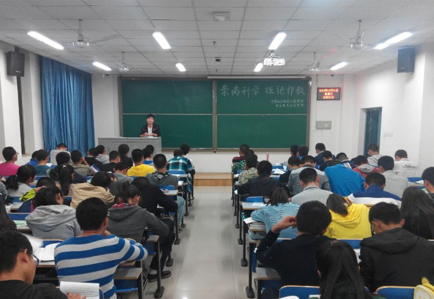 为了倡导科学健康的生活方式,帮助青年学生树立崇尚科学、防范和抵制邪教的意识,切实增强识别邪教、自觉抵制邪教的能力,计算机与通信工程学院(电子信息工程学院)开展以“崇尚科学反对邪教”为主题的科普知识宣传和教育活动。