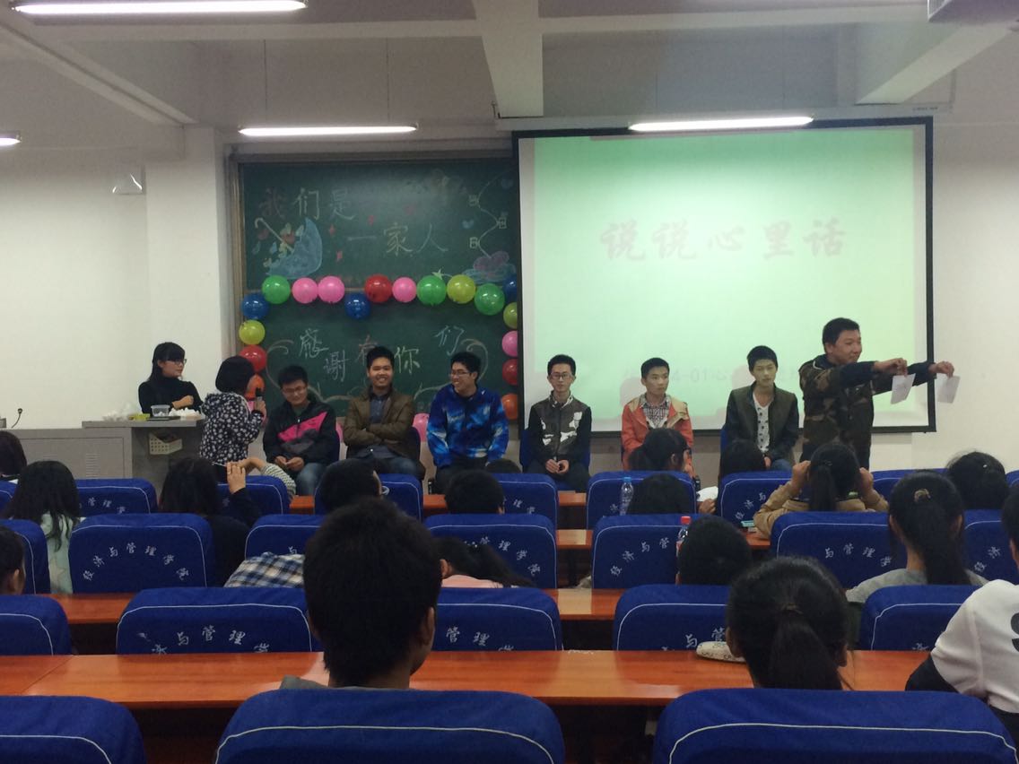 为加强同学们对心理健康的深入了解,我院组织大一新生展开来一系列新生主题班会活动,市场营销15-01班于2015年10月21日以“我们是一家人”心理主题班会拉开序幕。
