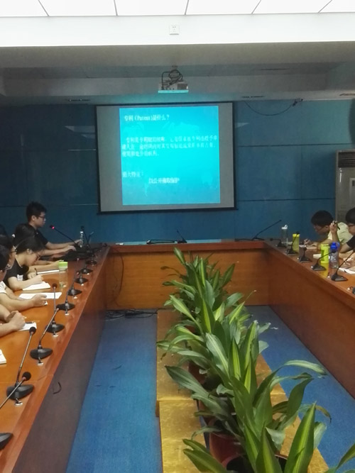 10月27日16:00~17:30在广东志高空调有限公司科技楼321会议室,由佛山市南锋知识产权代理有限公司总经理高崇和陈俊钊工程师为同学们进行了专利知识的基础培训,内容包括:专利类型、不同专利类型的差异、专利说明书的格式、专利技术交底书的撰写等。使同学们对专利有了初步认识,同时结合目前的生产实习岗位去尝试撰写专利。