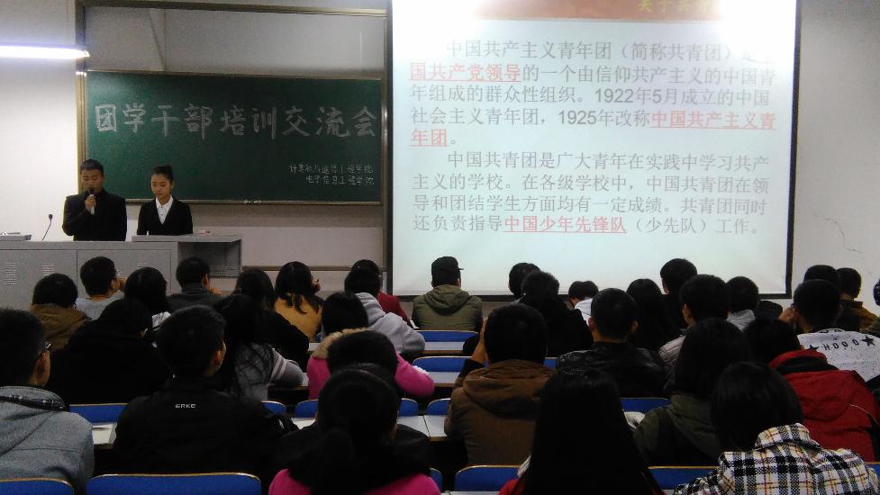 为全面提高我院学生团干部的整体素质,加强学生干部队伍建设,培养一支作风过硬,乐意奉献的团干部队伍。计算机与通信工程学院(电子信息工程学院)于11月7日下午学院楼118召开了“2015年团学干部培训交流会”,我院分团委成员、2015级全体团干部参加了本次交流会。