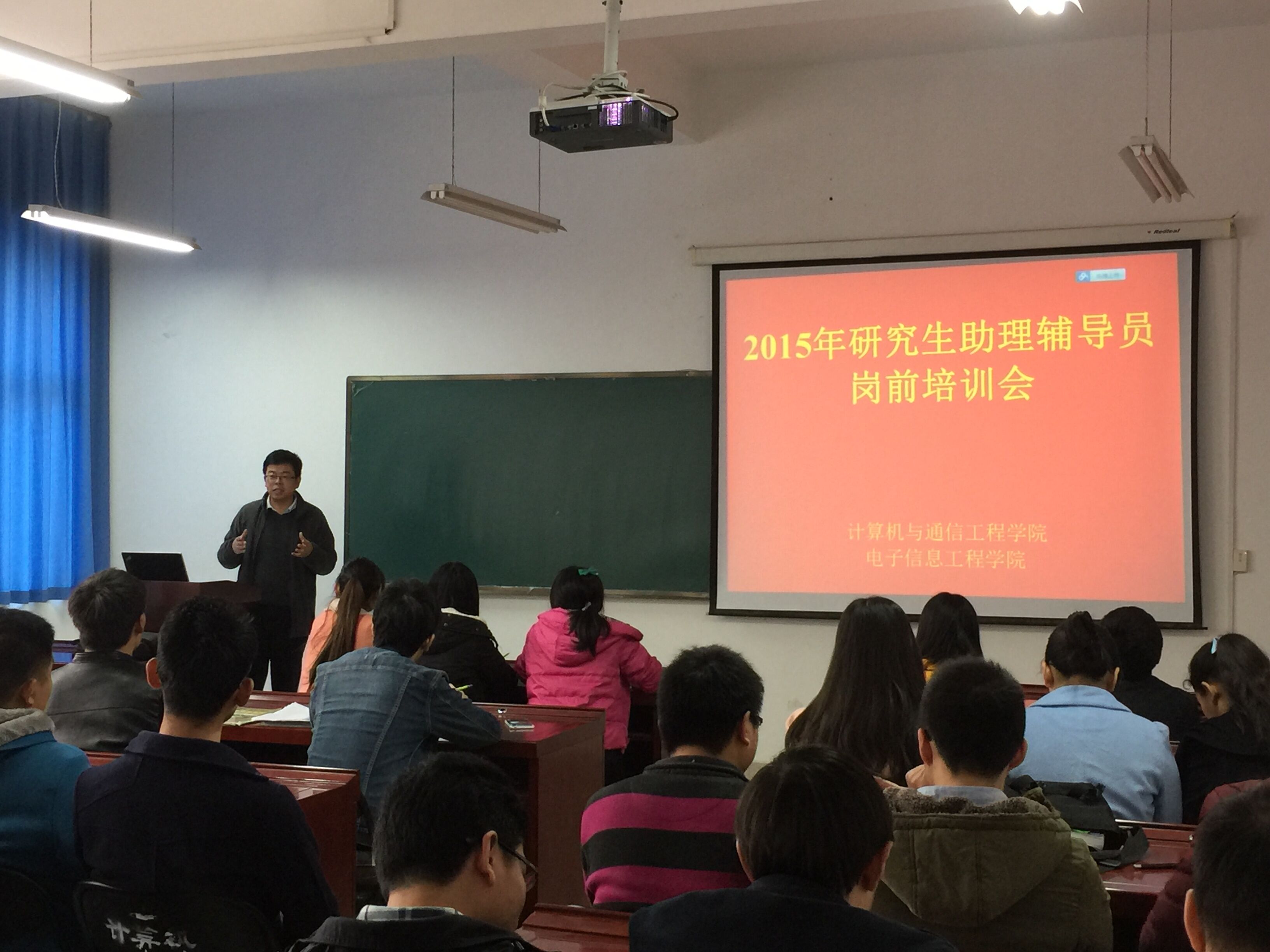 11月19日,计算机与通信工程学院(电子信息工程学院)在计算机楼413召开研究生助理辅导员岗前培训会,学工办老师、辅导员、大三各班级干部及助理辅导员参加了会议,会议由总支副书记葛勋主持。