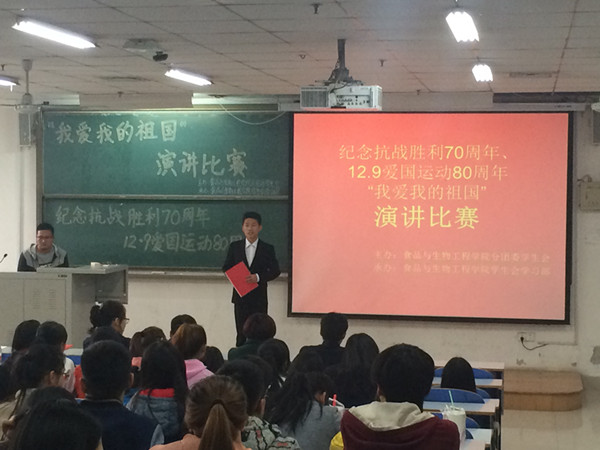 食品与生物工程学院举办纪念“一二•九”系列活动之“我爱我的祖国”演讲比赛