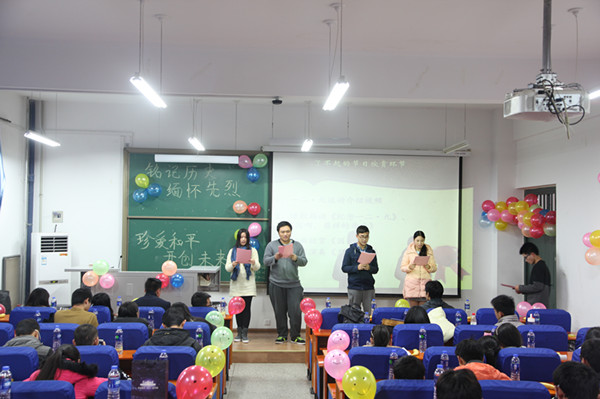 为加强青年学生的理想信念教育和爱国主义教育,引导同学们牢记历史、珍爱和平,牢固树立中国特色社会主义共同理想。11月22日,食品与生物工程学院开展了以“缅怀先烈 铭记历史 珍爱和平 开创未来”为主题的团日活动,学院辅导员老师和2015级学生参与了本次活动。