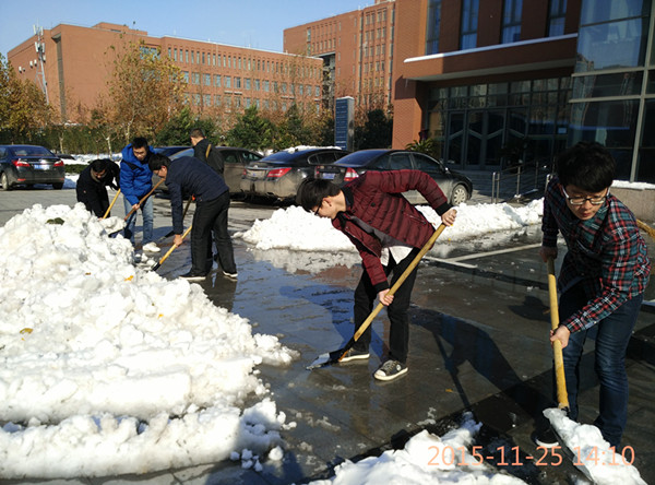 此次降雪量较大,道路冰冻情况较为严重,参加义务扫雪除冰的师生们手拿铁锹、扫帚、推板等工具或清扫门前积雪,或破除道路上的冰冻,大家不畏寒冷,不怕辛苦,齐心协力,边铲、边扫,认真清理学院门前广场积雪,积雪很快被打扫成堆、清理干净,经过一个多小时的努力,食工学院广场及周边道路畅行无阻。