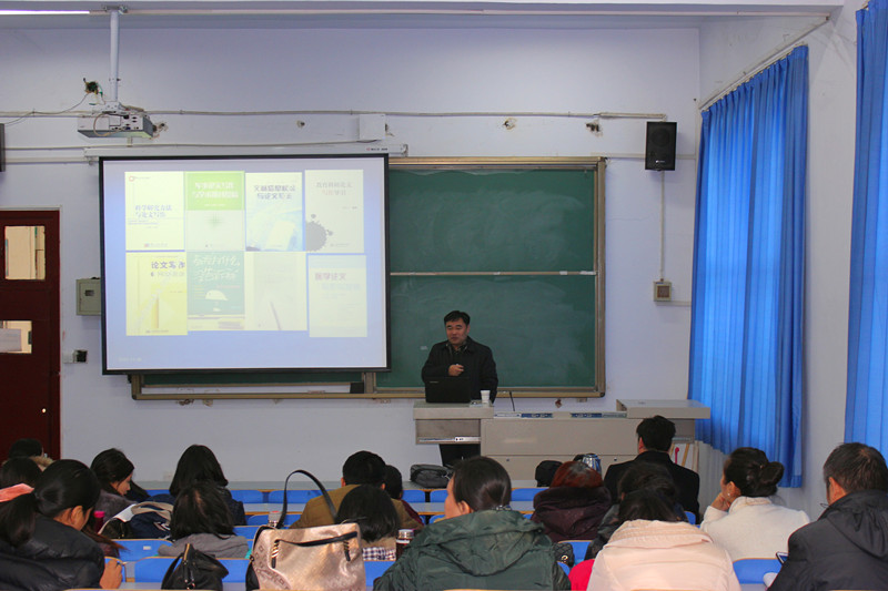3时,孙景峰教授在东二楼100为我院全体教师作题为《社会科学论文的写作与发表》的学术报告。孙教授从题目选定切入,详细讲解了选题原则、选题方法、选题类型等问题,并从论文摘要、导言、参考文献等方面阐释了提高发表率的技巧,同时强调坚决杜绝学术不端之行为。