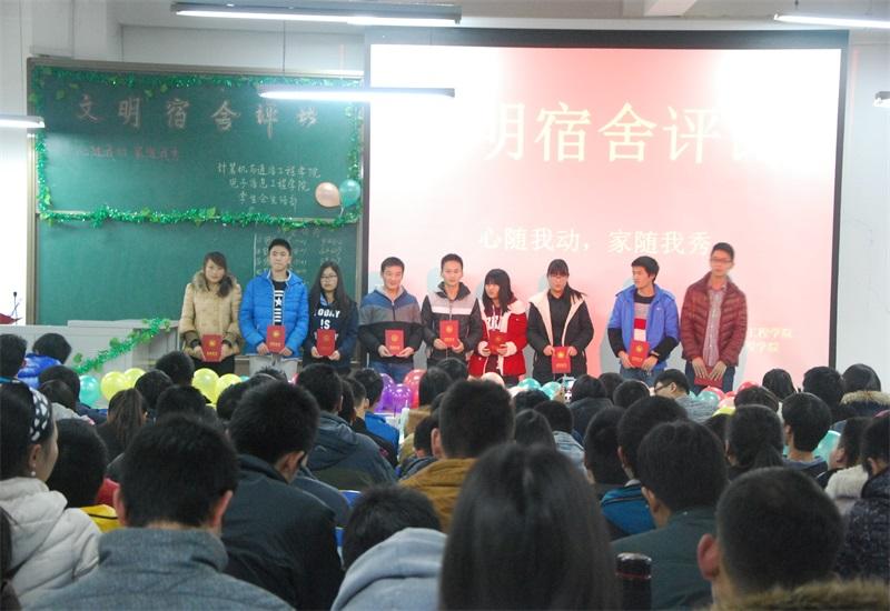 12月13日,计算机与通信工程学院(电子信息工程学院)在计算机楼118成功举办2015年“文明宿舍”评比大赛。我院14、15级参赛宿舍及学生代表330多人参加这次活动。