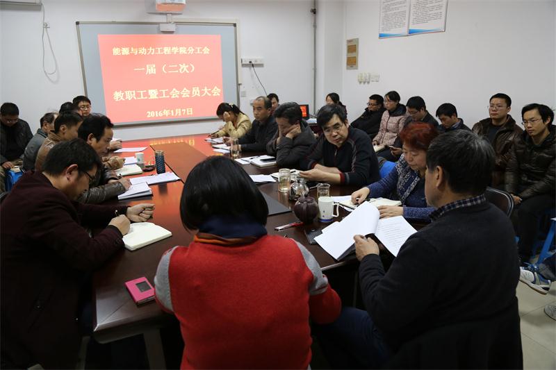 2016年1月7日下午4:00,在西三楼五楼会议室,能源与动力工程学院召开一届二次工会会员大会。全院教职工参加会议;大会由分工会主席吴学红同志主持。