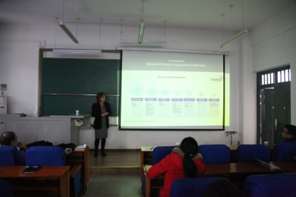 1月21日至23日双方开展了深入的学术交流,赫瑞•瓦特大学Stephen R. Euston教授及其团队Michail I. Panagiotidis教授、Lydia J. Campbell教授、Julien Jonchamp教授分别就食品蛋白质功能特性研究、蔬菜中天然提取物毒理学、脂肪替代品研究、食品加工副产物的功能特性研究等方面为我院教师和研究生进行了4场精彩的学术报告。我院申瑞玲教授、李学红教授也分别就β-葡聚糖的营养评价和淀粉多糖改性研究方面做了相关报告。学术报告期间,食品学院主要团队负责人和学术骨干与四位教授就双方的研究领域和主要内容开展了充分的交流和研讨。